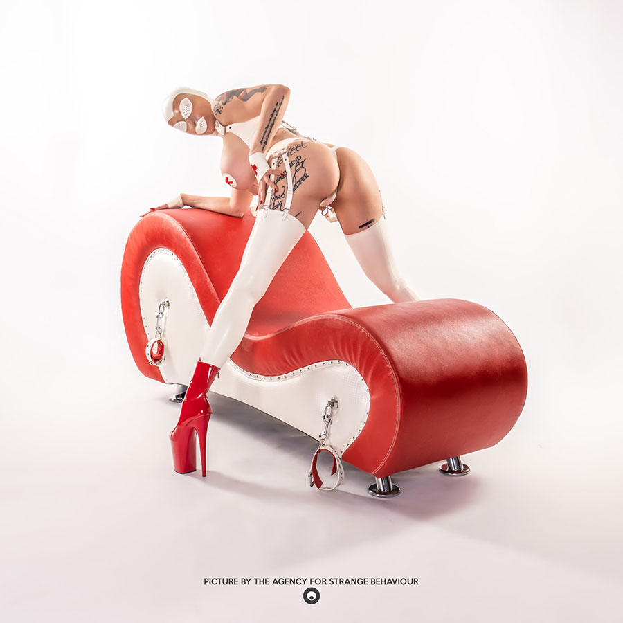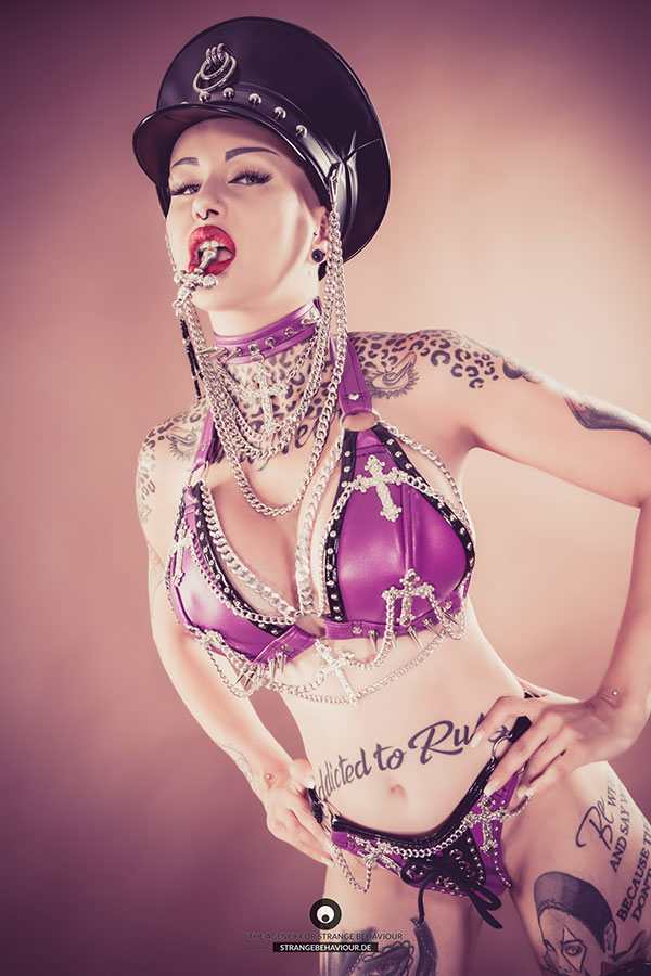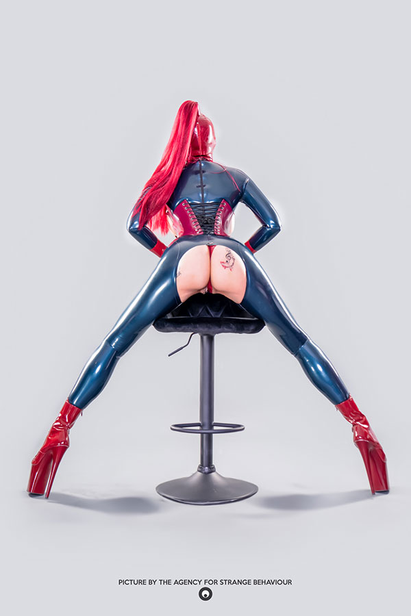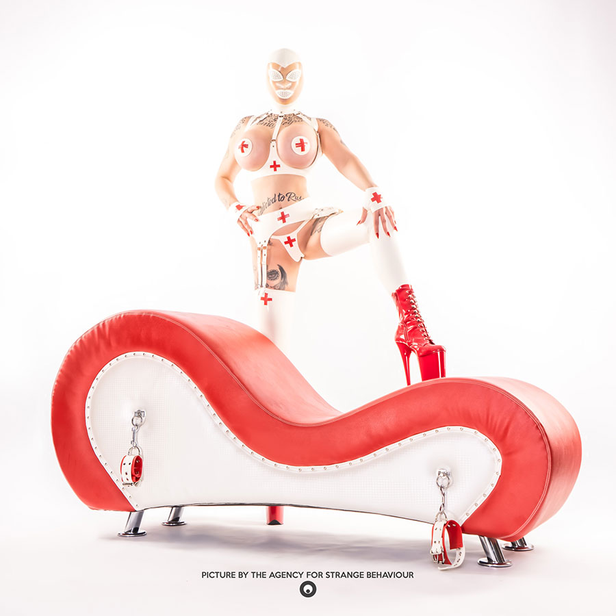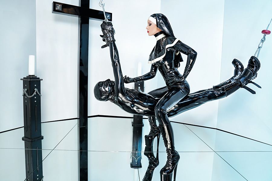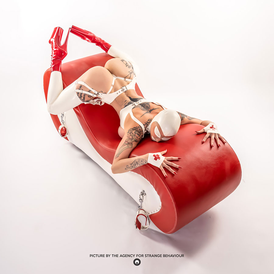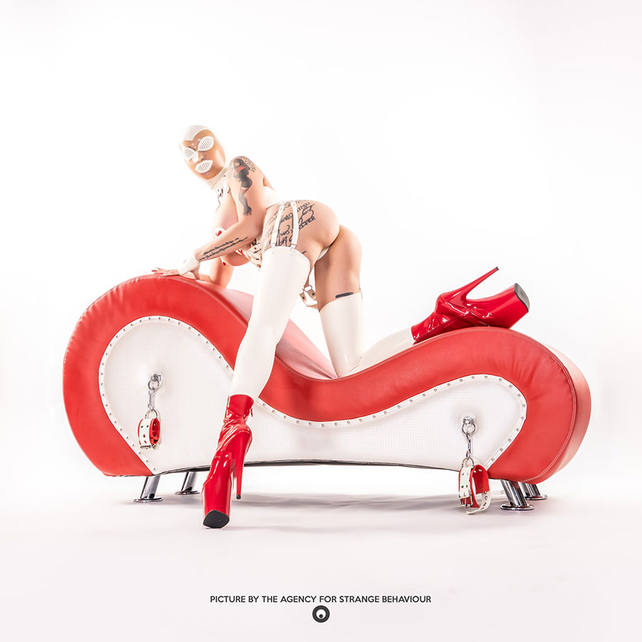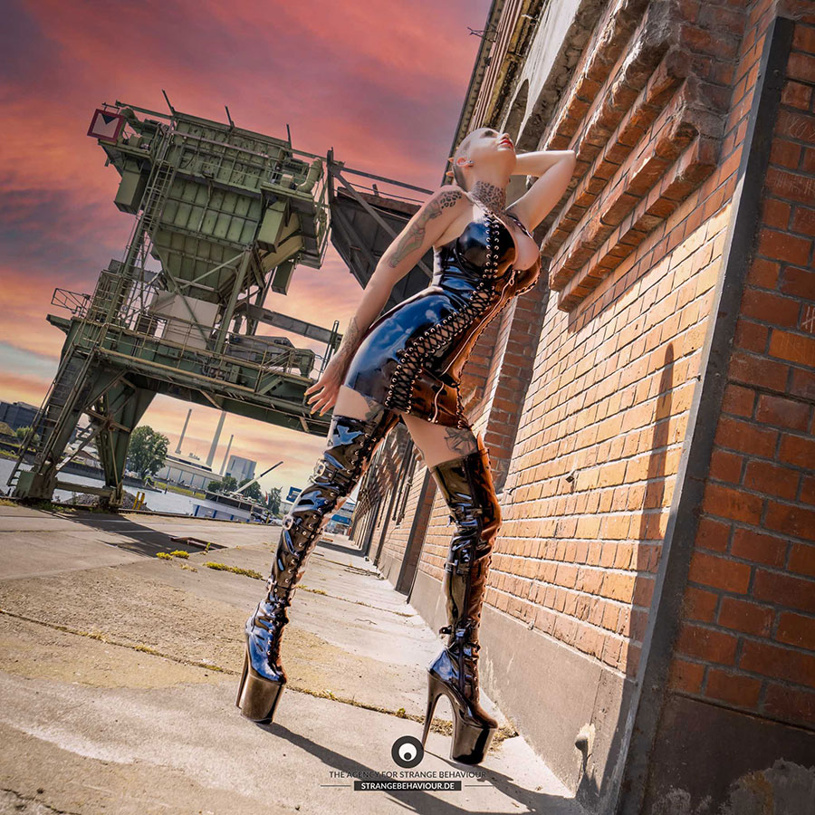 Alle Materialien wie Lack, Leder und Latex, alle Outfits für Rollenspiele, sowie alle Ausstattungen für Klinik und OP führe ich ständig mit mir und sind somit jederzeit und an allen Orten, an denen ich gastiere, vorhanden.