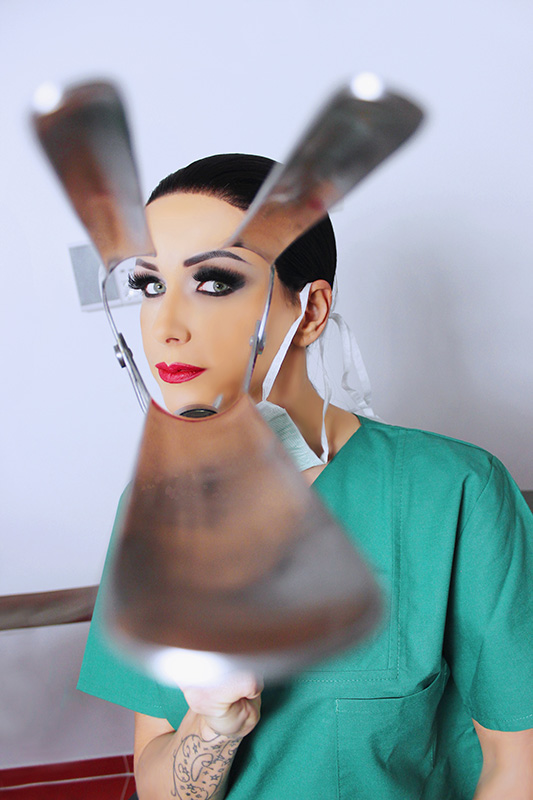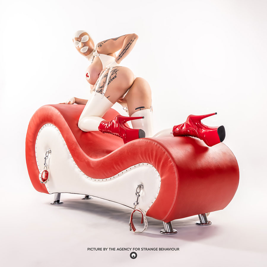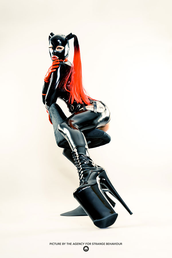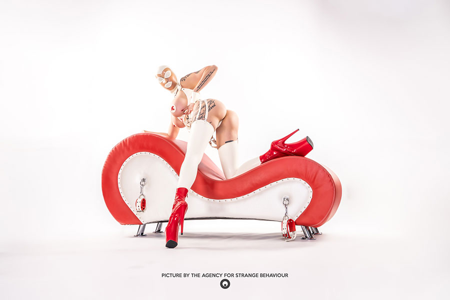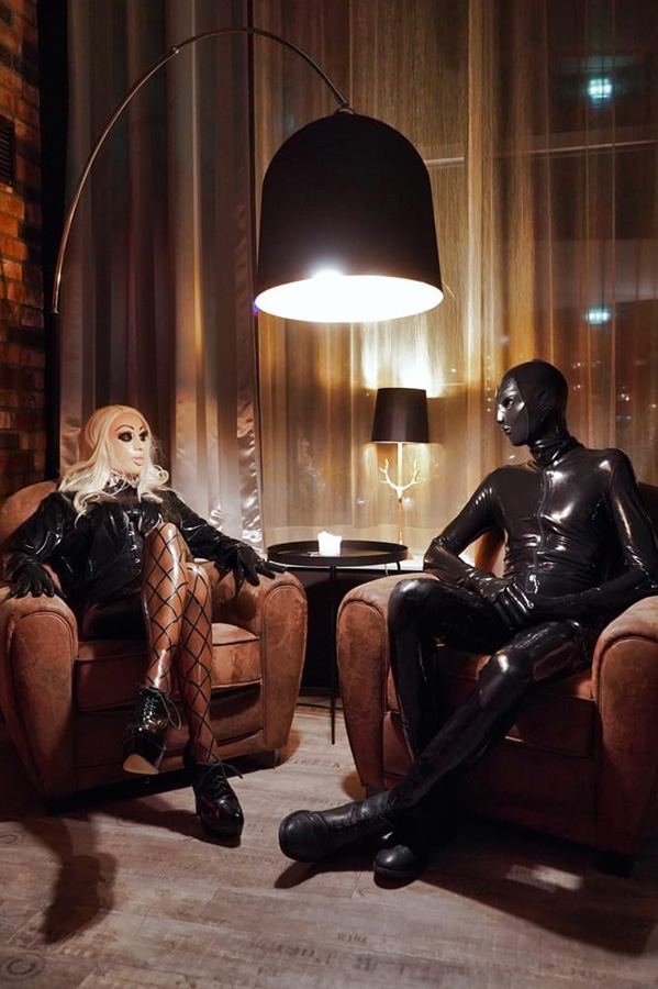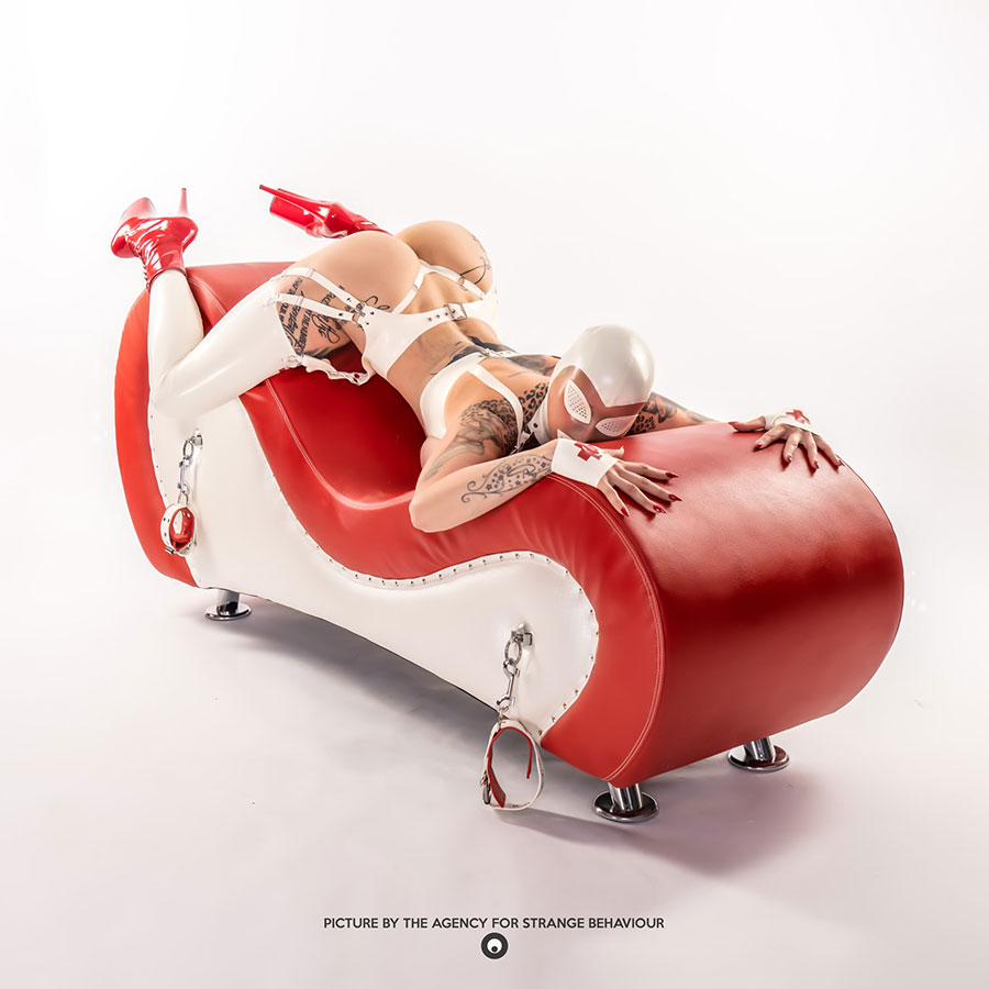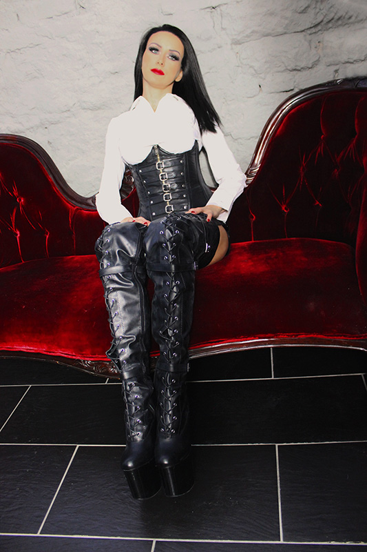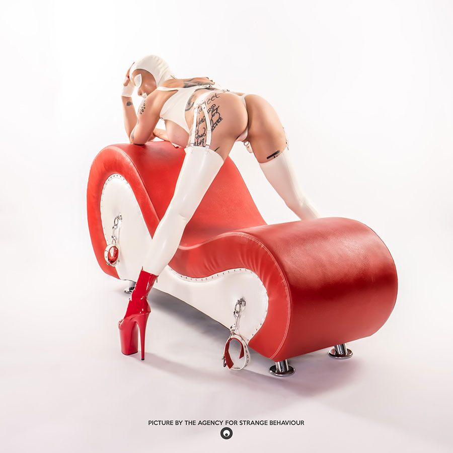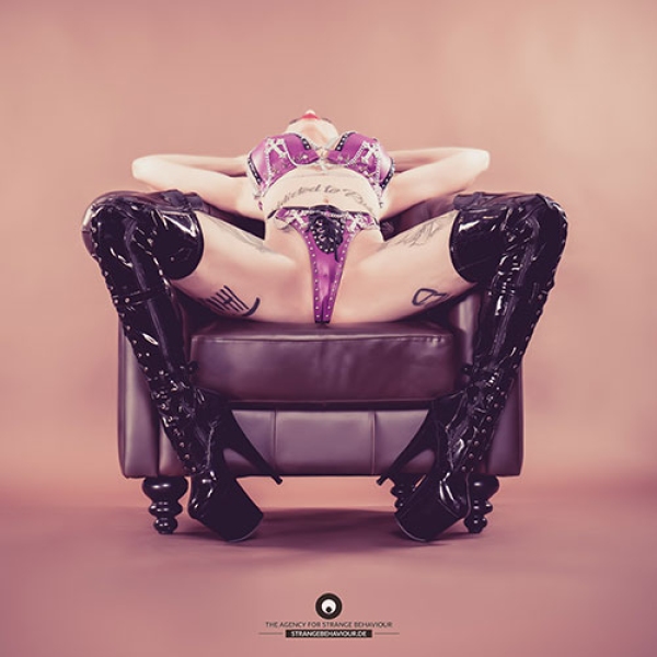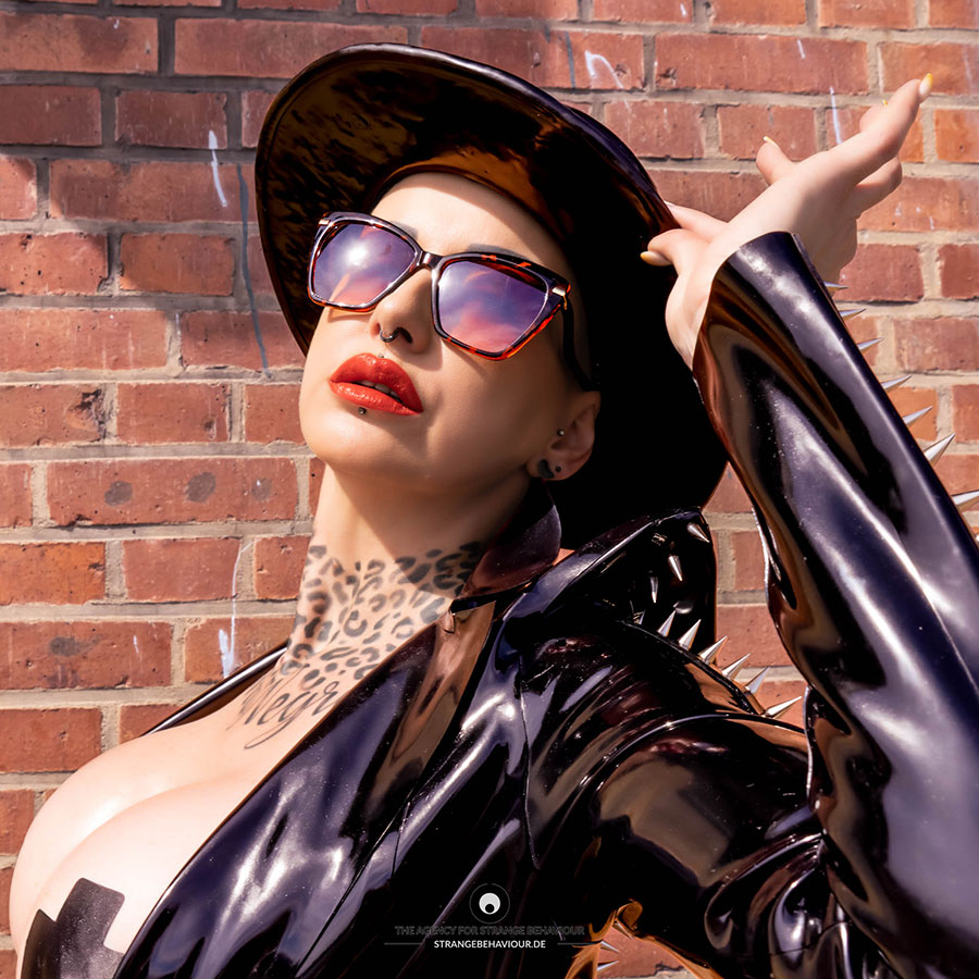 Alle Materialien wie Lack, Leder und Latex, alle Outfits für Rollenspiele, sowie alle Ausstattungen für Klinik und OP führe ich ständig mit mir und sind somit jederzeit und an allen Orten, an denen ich gastiere, vorhanden.